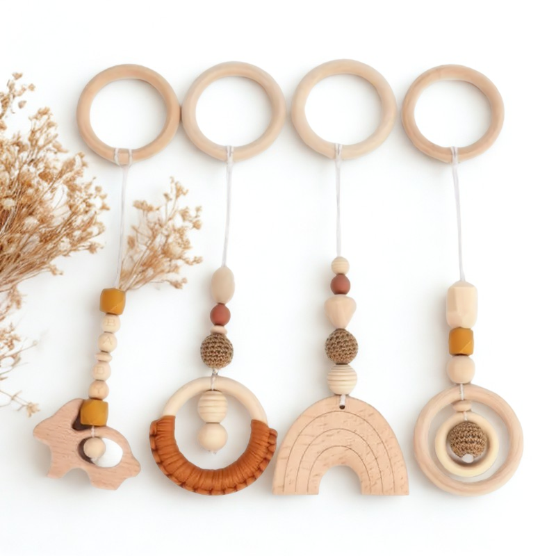 Diese Spielbogenanhänger verwandeln jeden Spielbogen in eine kleine Erlebniswelt und unterstützen dein Baby optimal bei seiner Entwicklung – auf natürliche, sichere und stilvolle Weise.
